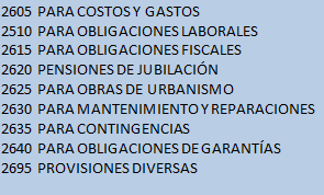 provisionados por el ente económico por concepto de obligaciones
