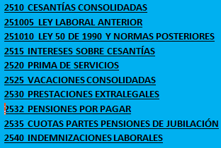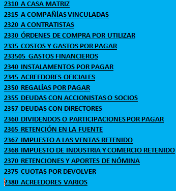cuentas por pagar, los impuestos, gravámenes y tasas, las obligaciones laborales, los