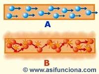 los electrones; pero cuando la resistencia es elevada, comienzan a chocar unos con otros