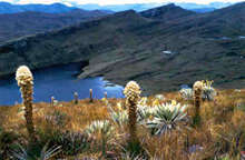 1. Superpáramo: Puede considerarse una tundra alpina. Presenta musgos, líquenes y vegetación abierta de pequeños arbustos, frailejones y pastizales. Hay muchas lagunas con juncos. Promedia unos 2ºC.