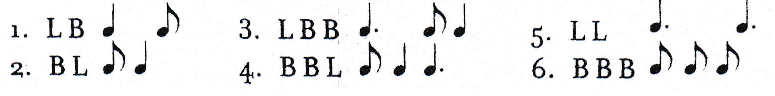 6 modos en combinación de corcheas, negras y negras con punto