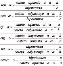 Seno= llamamos seno de un ángulo a la razón entre nel c.o. y hip.
