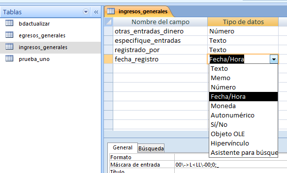 CAMPOS "+" Ó "-", TIPO DE DATO,