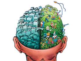 1. Crea los pensamientos nuevos, para conducirlo al hemisferio izquierdo.