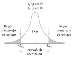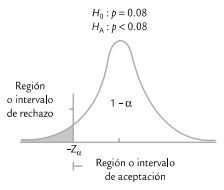 Rechazar H0 si el estadistico de prueba cae en al región de rechazo