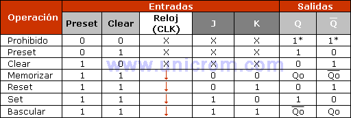seguimiento de entrada del flip-flop, pero tiene dos entradas, denominadas tradicionalmente J y K.