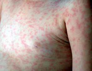 TX: Rivabirina IV en casos graves. Vitamina A. Aplicar vacuna SPR a los 2 años.