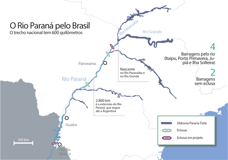 O rio Paraná recebe muitos afluentes, como os rios Tietê, Paranapanema, Iguaçu e Paraguai.