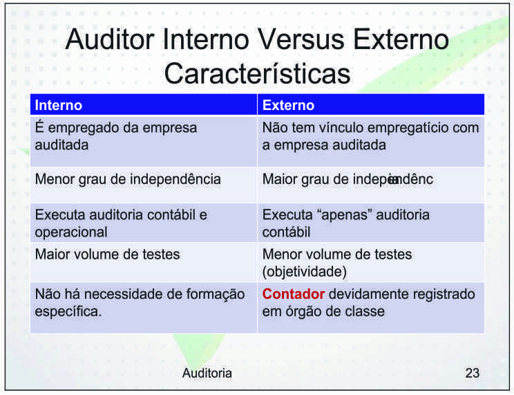 auditoria contábil e operacional. O