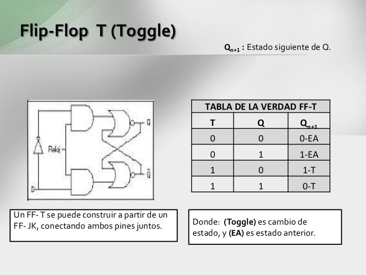 se ligan. Ladenominacion T proviene de la capacidad del flip floppara comentar o cambiar de estado