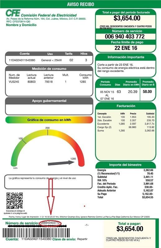 estado de cuenta de teléfono, luz, agua, predial