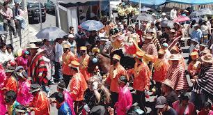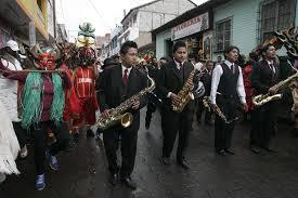 Parade dancing to a band of people following the rhythms of sanjuanitos