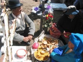 All celebrate with a big glass of Colada Morada ( a sweet beverage purple