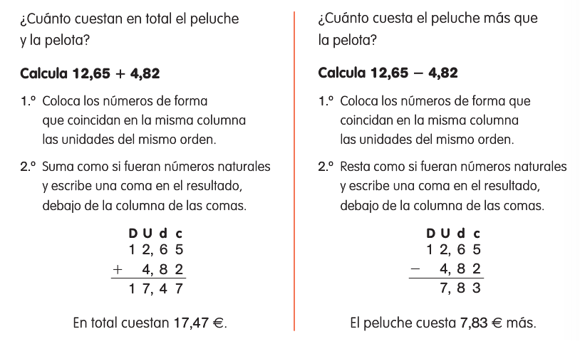 se colocan los numeros decimales en columna haciendo corresponder las comas.