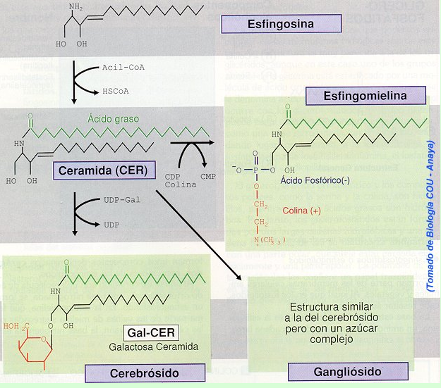 Resultan de la unión de la ceramida y un conjunto de monosacáridos como la glucosa y galactosa entre otros.