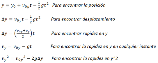 Y=vot+yo - 0.5 gt2 o lo que es lo