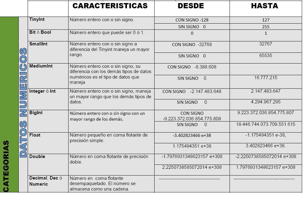 En la imagen de datos numéricos encontraremos una lista con el tipo de datos números