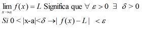 existe δ > 0 tal que: si x (a+δ, a), entonces |f (x) - L| <ε