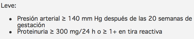 Hipertensión + proteinuria (c/sin edema) después 20a semana