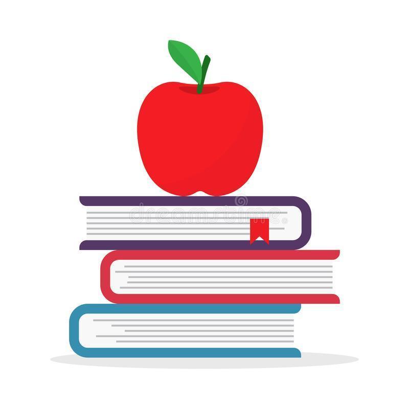 De Nuevo Escuela Libros Texto La Pila Con Manzana Ejemplo Del Vector Aislado En El Fondo Blanco 151964873 (image/jpeg)