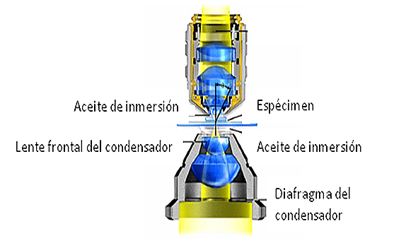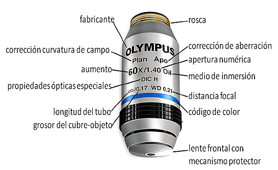 microscopio como los lentes y sistema de iluminacion.