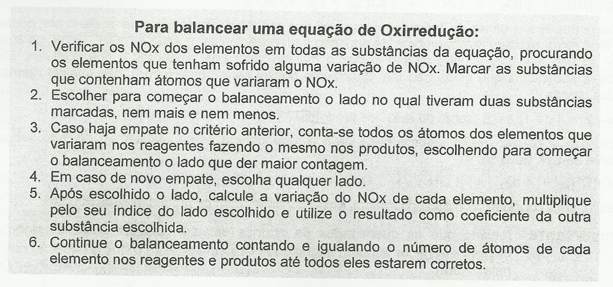 Geralmente começa-se o balanceamento pelo lado da água oxigenada