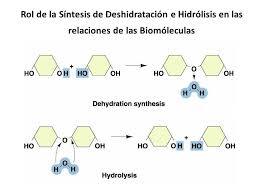En la síntesis de deshidratación se suprime un ión hidrógeno de una subunidad y un hidroxilo de otra.