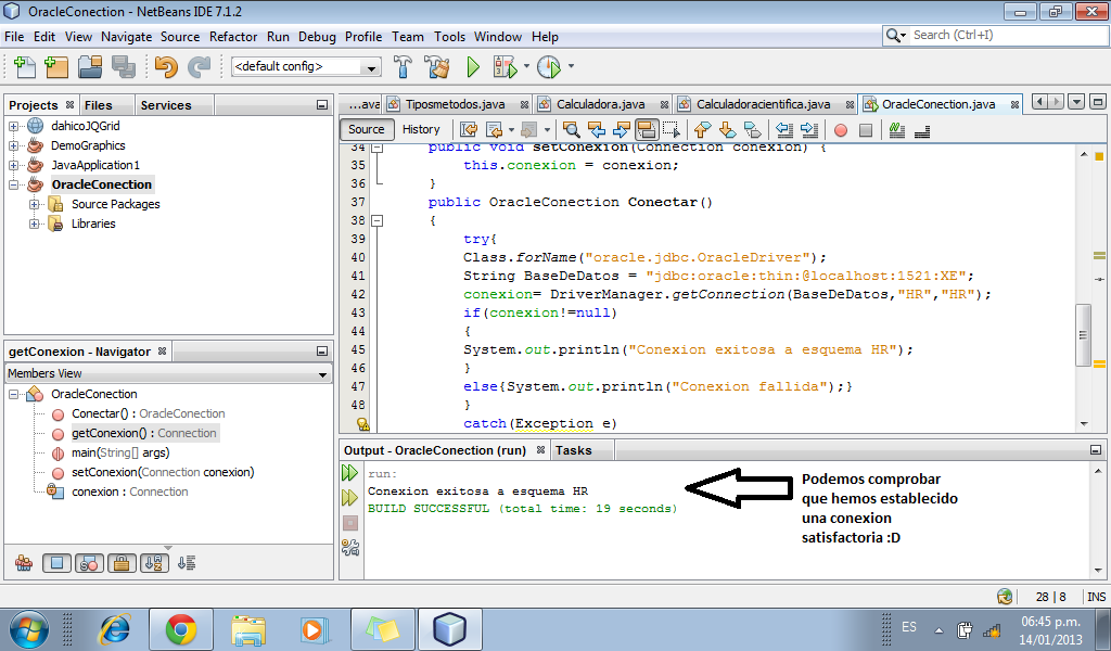 -) Inicia el servicio de Oracle en tu computador. 2- Inicia Netbeans IDE 3-) Ve a la opción