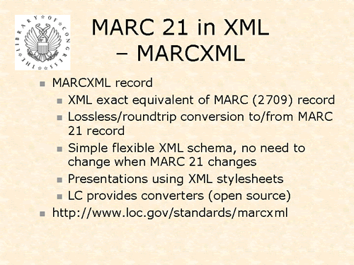 Para permitir que los datos en MARC 21 sean más facilmente intercambiables con herramientas y protocolos en XML