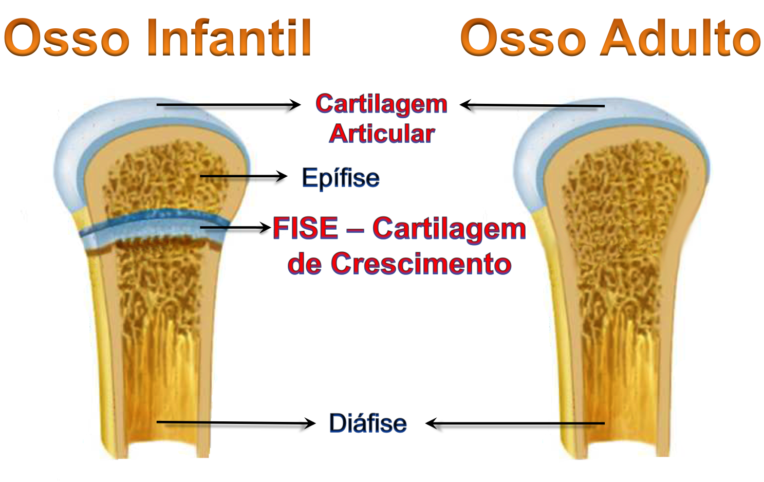 Ossos longos crescem em comprimento nas cartilagens epifisárias, nas extremidades dos ossos