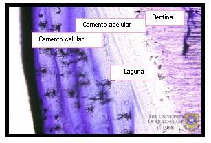 CEMENTO... Este tejido corresponde a un tejido óseo especial, sin irrigación ni inervación. Se une al hueso