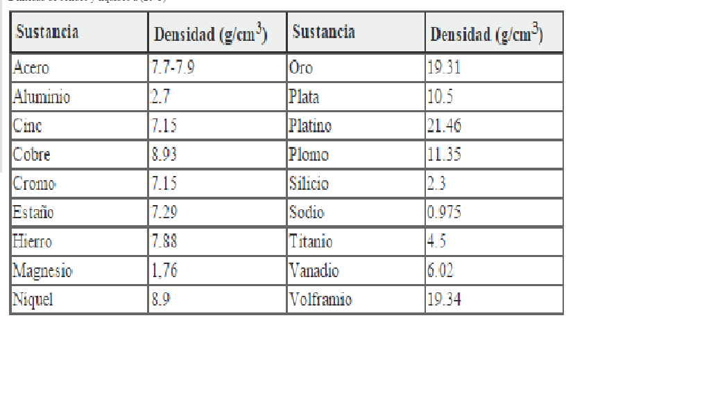 DENSIDAD DE SOLIDO Y LIQUIDO : Densidad de sólidos y líquidos a (20ºC)