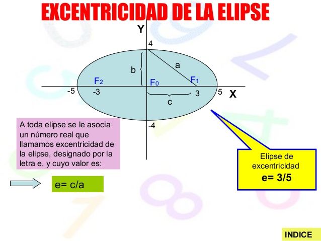 1. La elipse tiene dos ejes de simetria perpendiculares entre si , que se cortan en el centro de la curva (o)