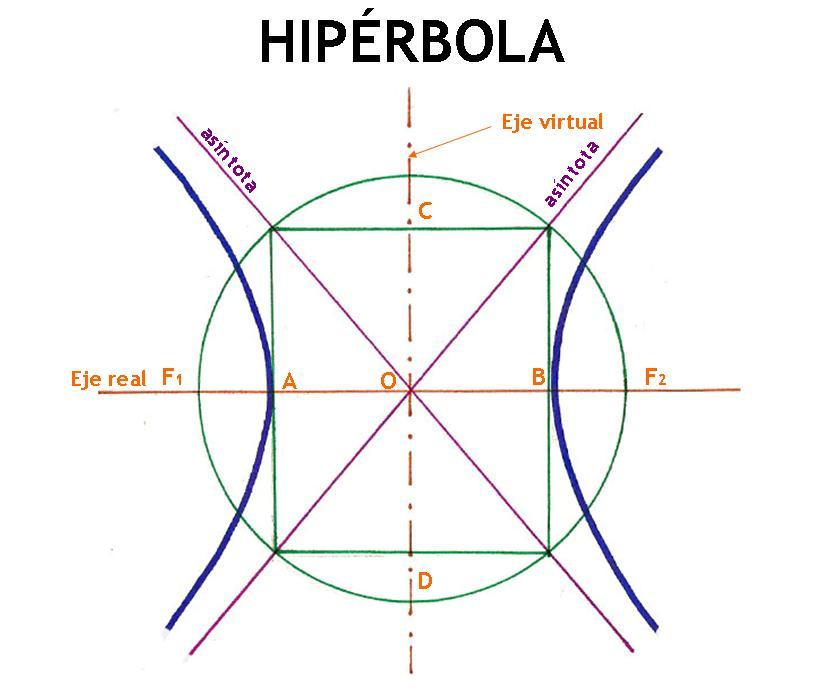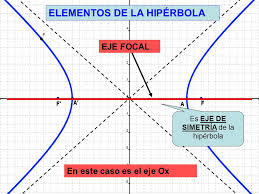 1. la hiberbola tiene dos ejes de simetria perpendiculares entre si , que se cortan en el centro de la curva (0)
