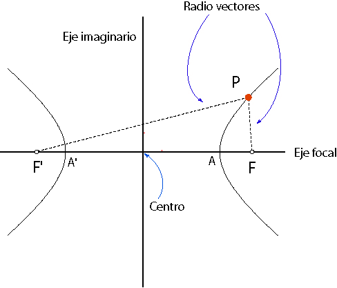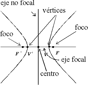 1. la curva cerrada y plana , que determina el lugar geometrico de los puntos del plano cuya diferencia de distancias a otros dos fijos F y F llamadas focos , es constante o igual al eje mayor V1V2.