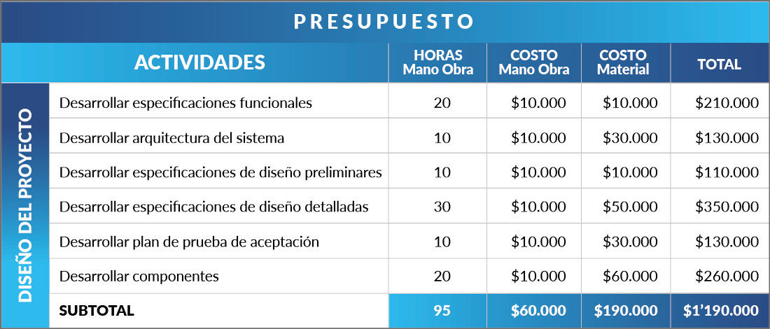 Esta en función de la disponibilidad del tiempo y la experiencia. Están presentados en forma de diagramas.