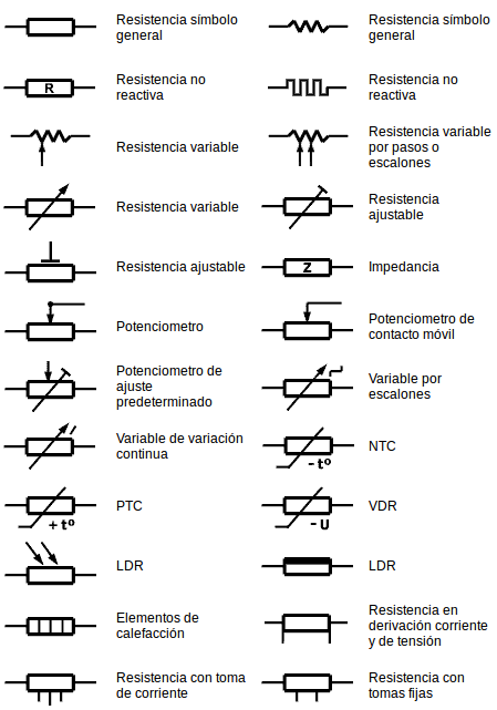 una línea recta. Por ejemplo: resistores fijos, variables o potenciómetros