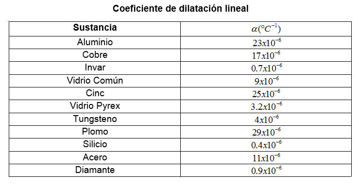 El coeficiente de dilatación lineal es el cociente que mide el cambio relativo de