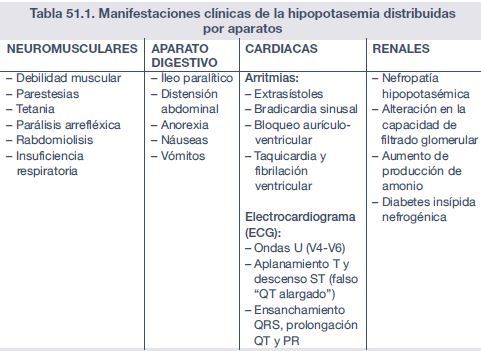 y por debajo de 2,5 mEq/l las manifestaciones son graves, principalmente