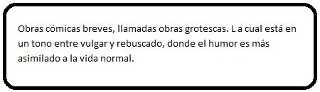 1. Aquellas obras donde su parte central es lo cómico. Están protagonizadas por personajes comunes y de la vida corriente, los cuales revelan lo errores del ser humano de una forma cómica y divertida para el espectador.