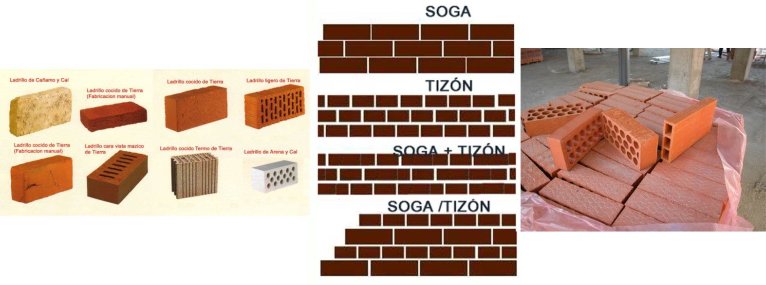 Los tipos de ladrillo el aparejo, las juntas y las leyes de traba