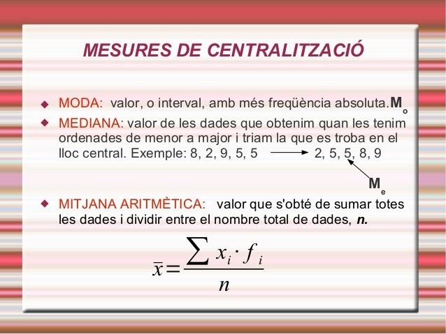 meitat de les observacions són majors que ell i l'altra meitat menors.