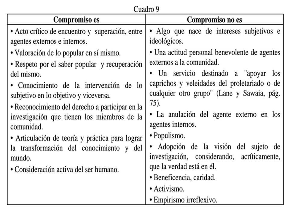 La comprensión y aplicación de la noción de compromiso, debido a la diversidad de valores a partir de los cuales se la puede estar aplicando (religiosos, partidistas, económicos,
