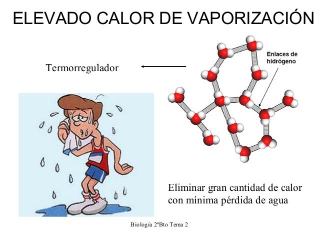 Tiene elevado calor especifíco y de vaporización debido a los puentes de hidrógeno