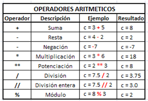 Operadores Aritméticos
