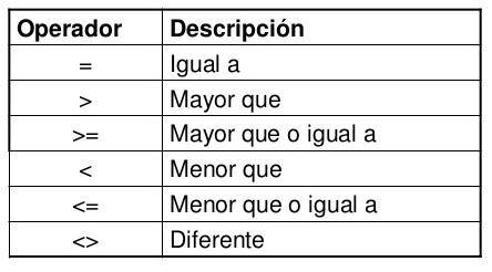 Operadores de comparación