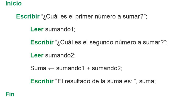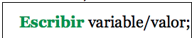 1. Escribir: escribe en los dispositivos de salida un texto que debe ir entrecomillado o el valor de una variable numérica, texto o carácter