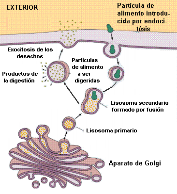 Digestión celular: digieren los materiales de origen externo (heterofagia) o interno (autofagia) que llegan a