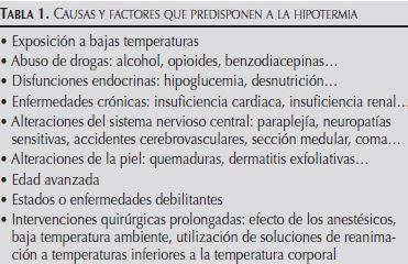 de la hipotermia. Los pacientes suelen presentar