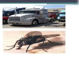 una mosca y un camion, ambos